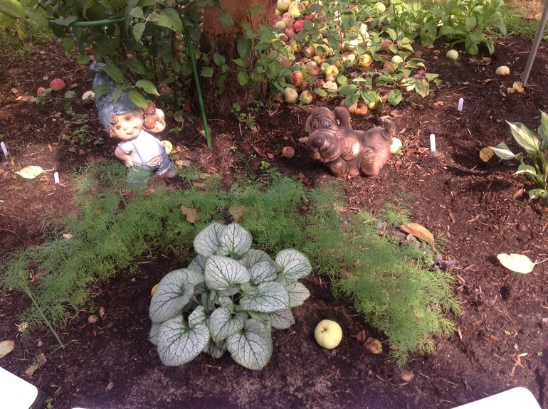 А это новые фигурки... Да-да, не спрашивайте, за бруннеркой укропчик... Это не реализованная эротическая фантазия: в голове нарисовались две дуги зелененькая и фиолетовая, но базилик подвел...