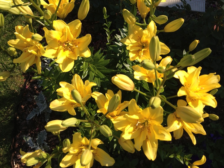 Спасибо. Регина, лилии, которые на первом фото — это четыре луковицы, разросшиеся примерно за 4-5 лет. Я остановиться не могу и подкупаю всё время. Покупаю всегда 5 луковиц и сажаю их вместе (осенью) в кружочек, выкапываю сразу ямку диаметром сантиметров 40 и глубиной 15 см, на дно кладу песок и какое-нибудь комплексное удобрение, раскладываю луковицы по кругу и засыпаю землёй.. То есть уже в первый же год это выглядит достаточно красиво. За 4-5 лет они разрастаются в такие джунгли. Беру азиатские лилии — они неприхотливые и не нуждаются в укрытии. Прошлой осенью рассаживала те, что на первой фотографии, луковиц там уже было немыслимое количество.