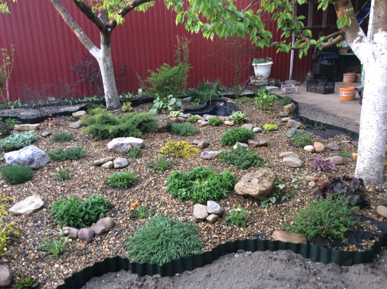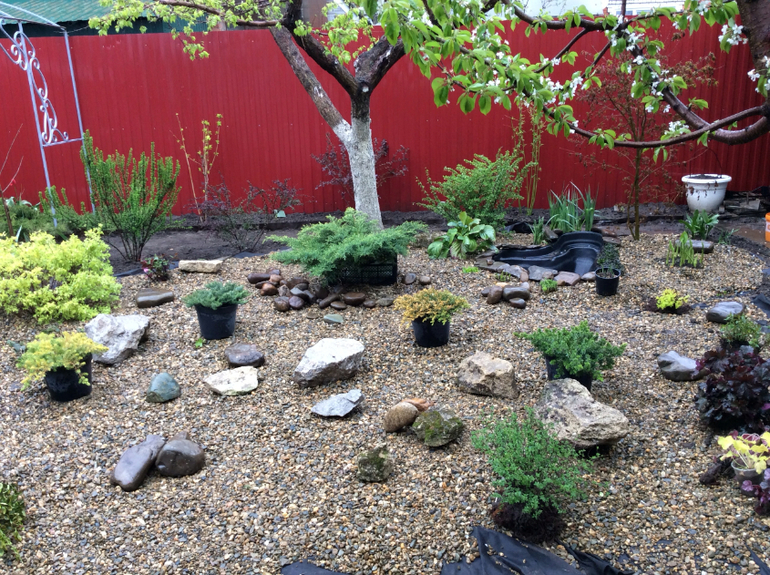 И еще такая мысль: камни крупные лучше немножко вкопать, чтоб они выглядели естественнее, не просто лежали сверху. А так вы большая молодец!