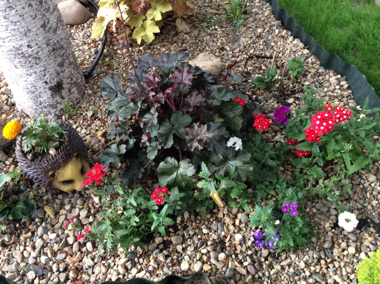 . На фото просто красотки!Лен, можно я с вопросами попристаю)))?Под гальку же что-то простилали, да? А под растения вырезали отверстия, правильно? Растюхам не жарко будет? Воздухообмен-то в почве уже уменьшится. И вопрос полива интересует. Достаточно при таком раскладе растениям влаги поставляться будет? Я тоже подобный небольшой уголок хочу соорудить в новом доме/дворе (когда он будет