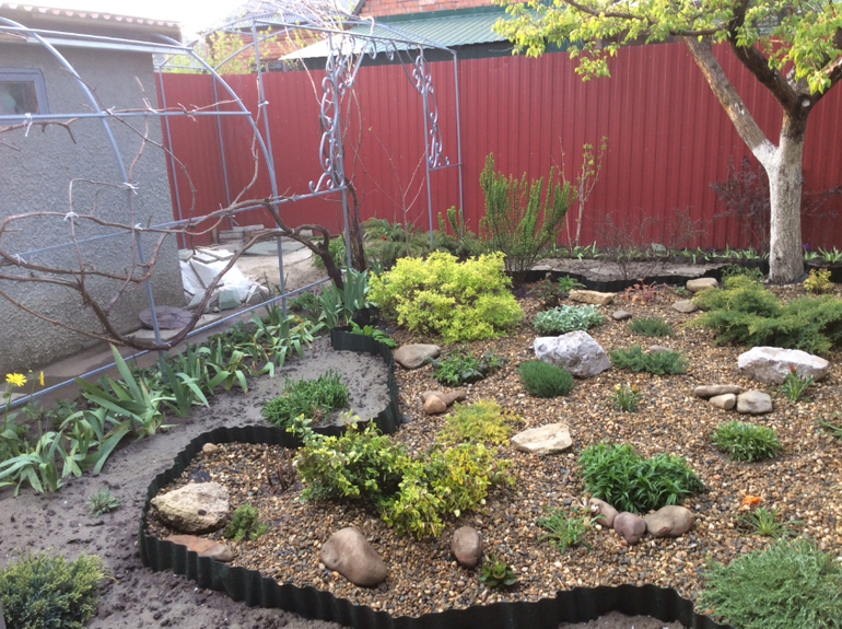 Спасибо, Юля, за комментарий. Но в нашем небольшом городе сложно найти гибкий с валиком, да еще и с подсветкой. Подсветку не очень люблю, теряется эффект природного ландшафта. Поэтому будем или исправлять на следующий год или маскировать газоном, газон еще слабенький.