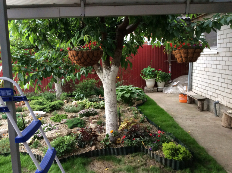 Окантовка согласна не очень. Это плод творения самой хозяйки:) сказала что пойдет:) купили слишком широкий, нужно было глубже вкопать, но... И можно было бы купить более качественный, но дизайн был эконом