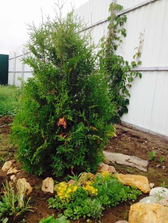 молодая туя живет у нас уже 3 года,одна из первых растишек.)