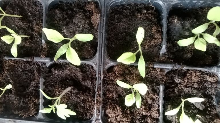 Помогите опознатьСажала помидоры (так было написано на пакете). Из 12 ячеек помидор оказался только один. Что остальное не могу определить. Семечки были все одинаковые, по крайней мере я разницы не увидела, но я и садовод не особо опытный. Это могут быть баклажаны?