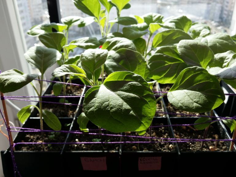 В этом году сажать было сложно, так сажала очень много сортов, и уйму времени уходило их обозначить. И придумать, как их разделить. С некоторыми посадками старалась соблюдать лунный календарь- ну не вижу я разницу.. может кому-то она и заметна. В этом году посадила перцы и баклы в специальные сборно-разборные ячейки, мне нравится), а томаты как и в прошлые года в общий ящик. Перцы и баклажаны сажала в ячейку по 2-3 семечки, что по-дешевле сорт- по 3 семени, тот, что по-дороже- по 2 семени. Когда появились первые настоящие листики, срезала ножницами лишние ростки, оставив по одному самому сильному. Перцы и баклажаны нежелательно пикировать, они не любят, когда трогают их корешки, а таким образом я не трачу лишнее место на ненужные слабые ростки и не трачу время на пикировку. Ниже фото части рассады. Земля в одной плошке с перцами на фото кажется зеленой)) но это не так, там песок почти белый , дал на фото такой цвет)