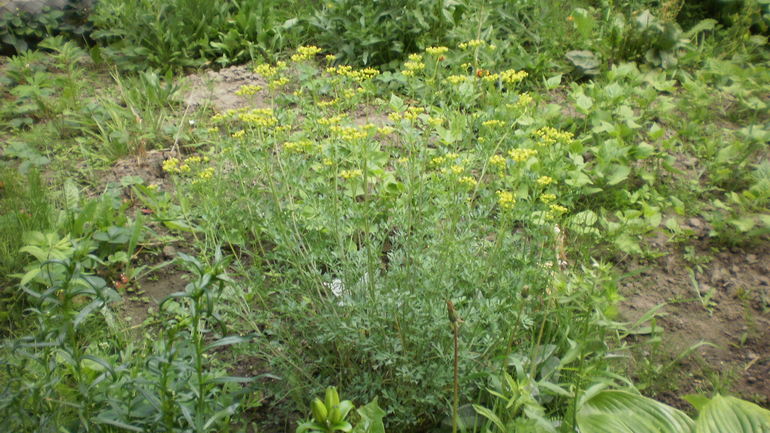 Пряные и лечебные культуры (Мята, зверобой, мелисса........)Решила вращивть как можно больше лекарственных травок. Купил семена руты пахучей. Она взошла и теперь цветет довольно симпатичнми желтыми цветочками. Сизо - зеленые листочки у нее тоже красиво смотртся.В общем , внешний вид у всего ратения очень даже привлекательный.