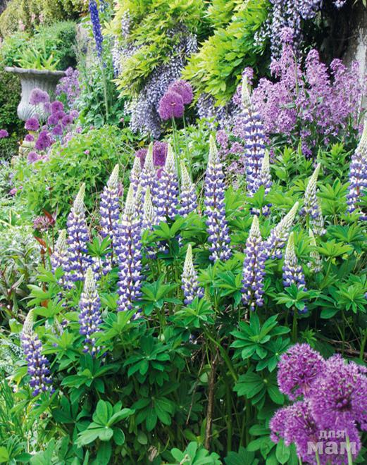 В монохромной композиции главное - поддержать многообразие оттенков цвета в пределах выбранной гаммы в течение сезона путем подбора последовательноцветущих растений.