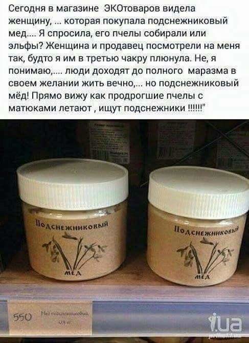 я тут недавно в магазине видела баночку. А на ней написано: "Мед ПЧЕЛИНЫЙ"... АААА!