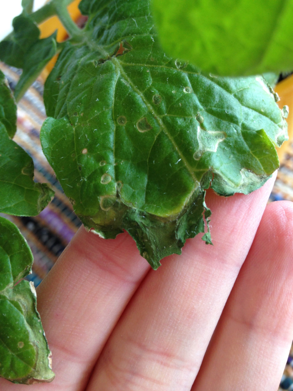 Это домашний помидор, не уличный. Не должна зараза доставать. Ничего не ползает и не прыгает? Не замечали?