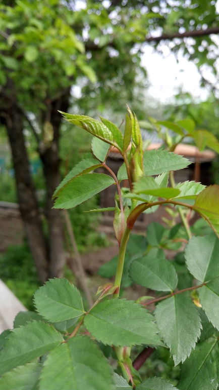 Это вьющаяся роза, я её каждый год вырезал, она посреди огорода растёт ни туда ни сюда, а в этом году оставила, посмотрю как цвести будет, может как-нибудь пересажу потом.