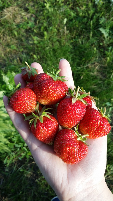Собираем урожай! (овощи, ягоды, фрукты)Вторые выходные дочка лакомится клубничкой) Пока снимаем понемножку, отвоевывая у птиц ягодки.