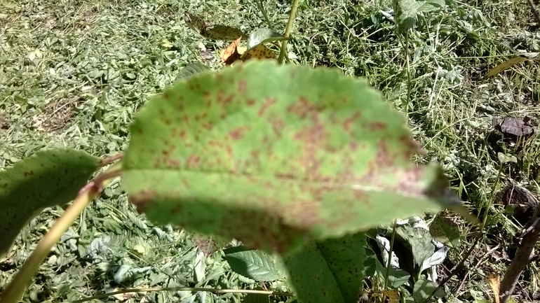Все лечить разным, скорее всего :) 1 - мучнистая роса + возможно какой-то клещик - попробуйте актарой, но от росы не подскажу, чем 2- похоже на клястероспориоз - в помощь бордосская жидкость. 3 - коккомикоз - та же бордосская, либо опрыскивание фармйодом по инструкции.
