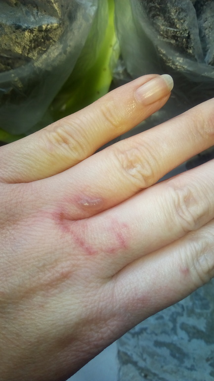 И вот этой весной я решила укоротить длинные стебли, обломала ветки покороче. Дома заметила на руках покраснения, но с кем не бывает после долгих огородних работ. Через день покраснения взялись волдырями. И тут я стала вспоминать, что когда-то на пачке читала про ядовитость растения, но мало ли за два года всё было хорошо. Однако, ожоги глубокие, стали фиолетовые, болезненны, ничего смертельного, но боюсь, что шрамы останутся.