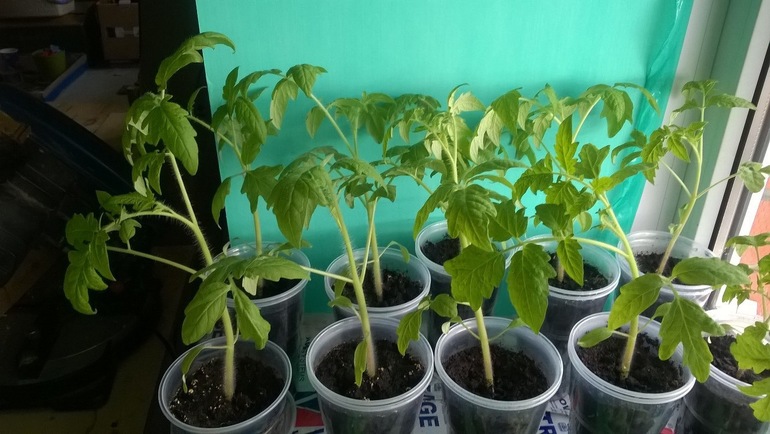 Перцы желтые и красные, было два сорта, перепутала при пересадке и не знаю где какие. 12 шт. получилось. Помидоры самые стойкие, для открытого грунта - 24 шт.
