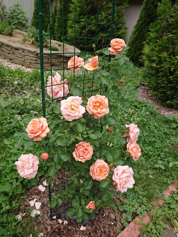 Плетистая у нас цветет все лето, где-то с начала июля. Цветок держится долго. Свекровь говорит - у нас сорт Dorothy Perkins. Еще два чайно-гибридных долгожителя, радующий обильным и стабильным цветением - это The McCartney Rose и Tequila Sunrise. Это со слов свекрови, у нее записано)
