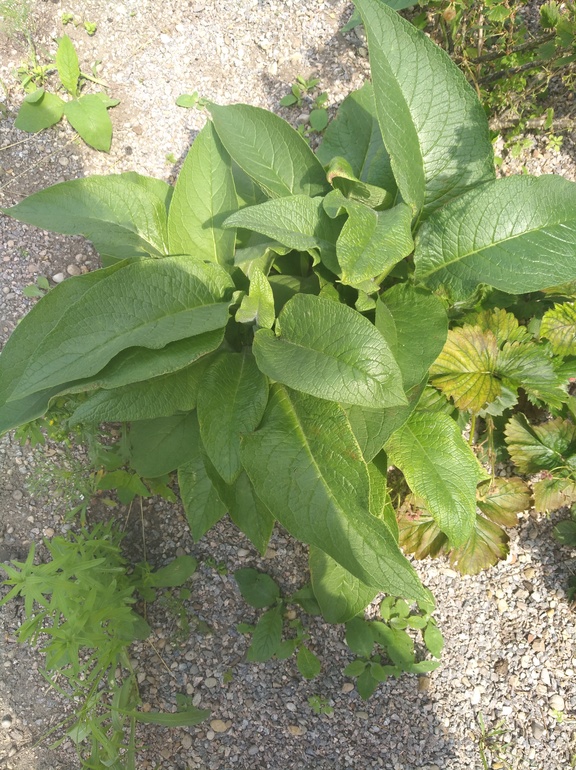 И подумалось мне, вдруг это полезная травка -муравка какая-нибудь, раз такая живучая. Кто опознал? Зеленые широкие шершавые листья. Не знаю, цветет ли, потому как до цветения выкапывала.