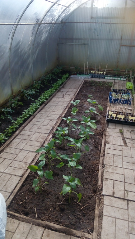 У меня вчера только руки дошли, посадила, наконец помидоры, в середину решила, перцы и баклажаны, на улице они у меня, никогда не вырастают.