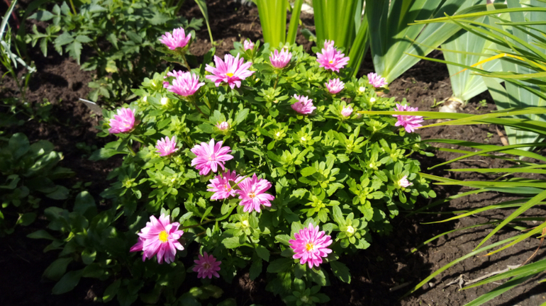 3 цвета корейской, 6 видов шаровидной мультифлоры. Все зимовали тут же, хоть и укрыла по неграмотности, Но мультифлоры изрядно померзли и активно в рост пошла только желтая. Остальные только пробиваются. Думаю, что после освобождения их от удушающей травы и подкормок быстро окрепнут и пойдут в рост.