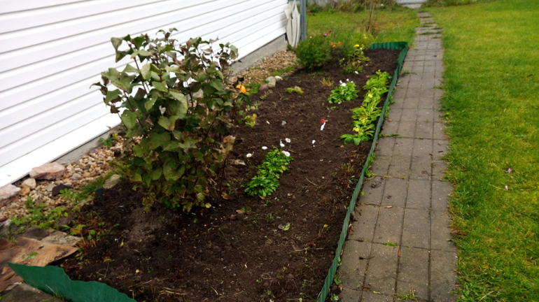 Ну и конец сезона 2019, октябрь. Все срезала, удалила однолетники, все прополола. Выкинула так и не цветущие 2 сезона луковичные от соседей (ирисы чтоли). Не цветет - значит не мое. Засадила луковичных Нарциссов (обычные и махровые). Эти и люблю, и 100% зацветут. Сирень уже скидывает листья. В ноябре воткну Крокусы и буду надеяться застать их цветение весной.
