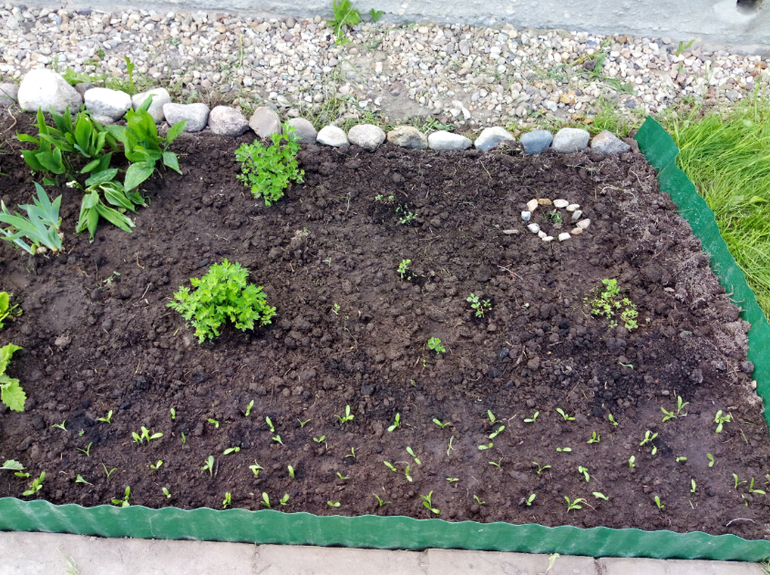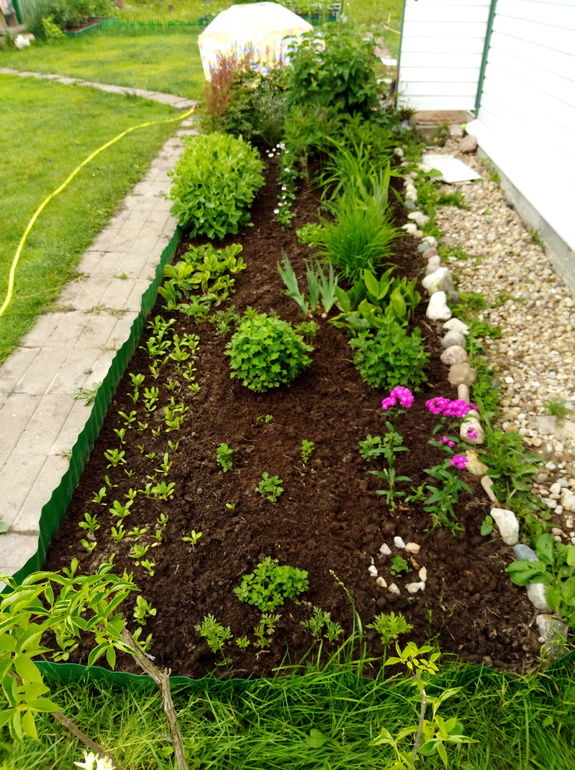 По передней части саженцы календулы "Оранжевый принц". Как зацветет - буду выкладывать еще фото.