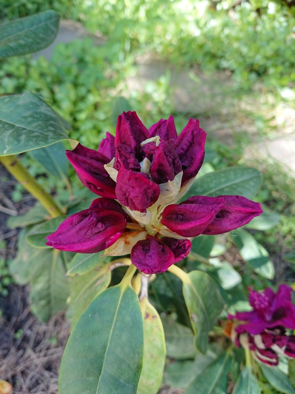 Ну и последний rododendron flava lackblatt , жду, когда распустится. Он любит солнце, как раз. Видимо, в этом году он цвести нормально не будет. Бутоны засохли. Или уже с осени такие были, или в мае на жаре.