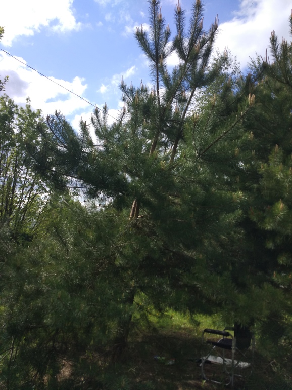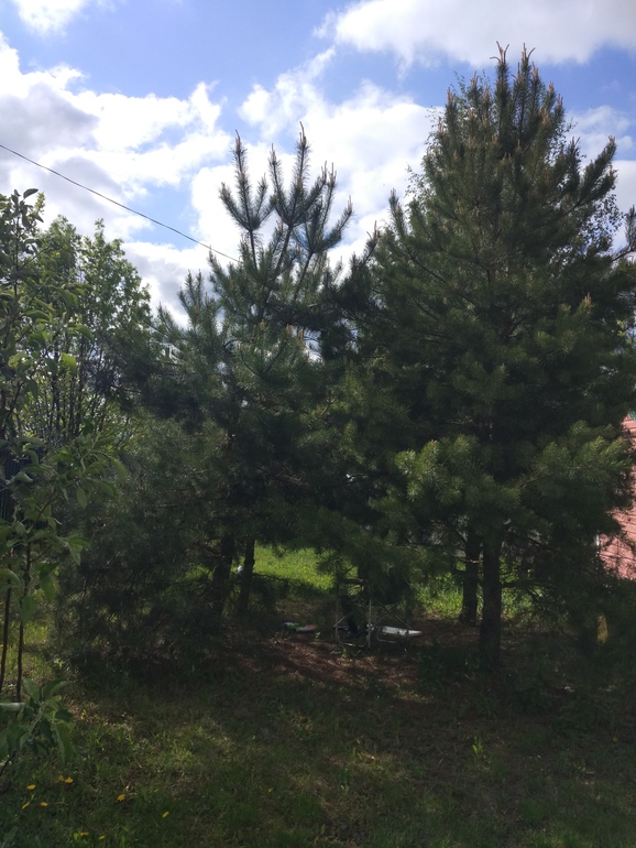 Вопросы обо всёмУчасток у меня третий год, на нем растут 4 сосны. Только в этом году дошли до них руки. Убрала нижние ветви, т.к. было много сухого, плюс, сосны сидят квадратом, очень близко друг к другу, как итог, внутри мало света, хвоя желтеет. В общем, проблем хватает. Но главная проблема, что две сосны, те что повыше, абсолютно ровные. А другие две, те что пониже, изогнулись к солнцу. Потому что напротив них ( на фото не видно) растут высокие сливы, рябина. Частично и этот вопрос решила, сливы проредила, рябину спилила. Но....имеем то что имеем, у двух сосен сильно искривлена 1/3 ветвей. Сосны по 5-6 метров, примерно 2 метра верхние вкось.
