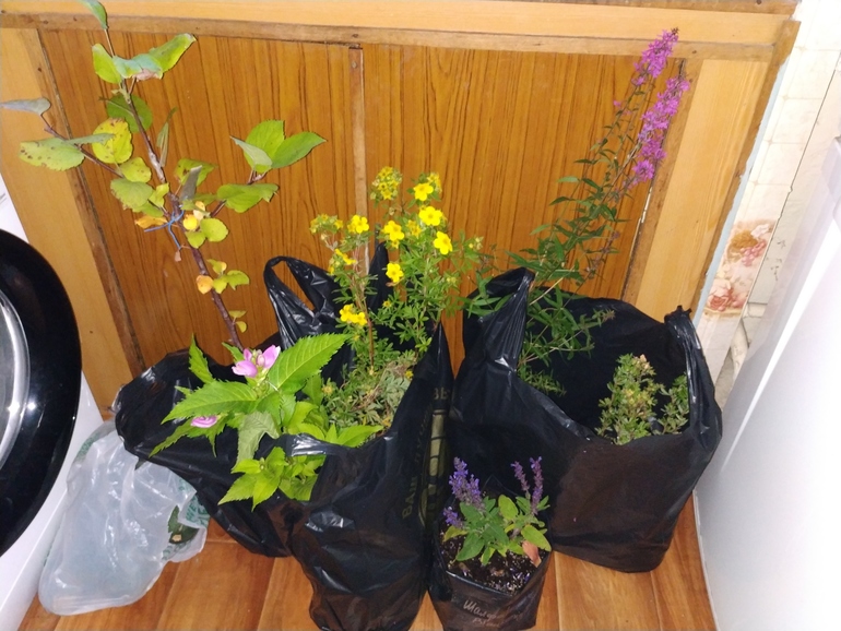 Яблонька двухсортовая,шалфей,лапчатка розовая и желтая, Дербенник и Хелоне)