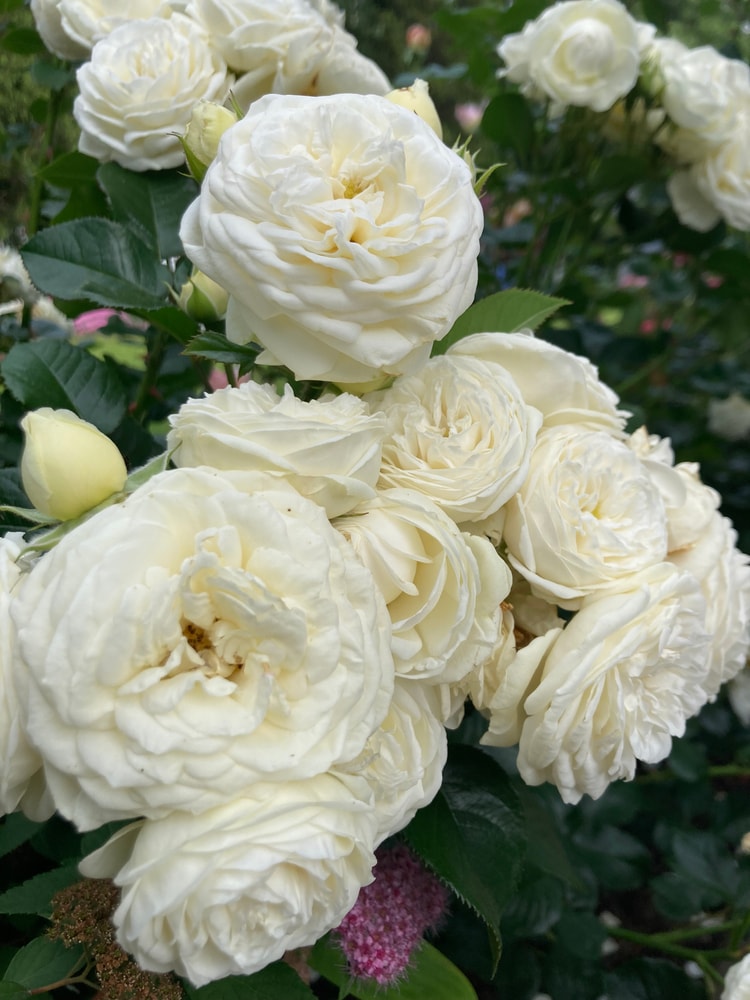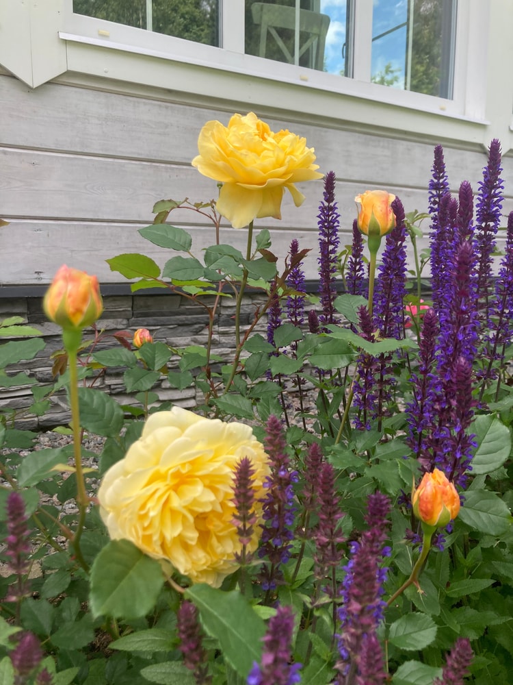 Айсфогель сразу можно узнать)) так красиво лепестки уложены, как перья птички. Желтенький кто-то из англичанок, листва характерная. "Голоден с." наверное? У меня сейчас в саду пауза по розам (единичные цветки не считаются), но уже бутончики второй волны колосятся. Недели через 2 зацветут. "Джубили с." тоже ни с кем не спутать, оттенков такой специфический и сложение