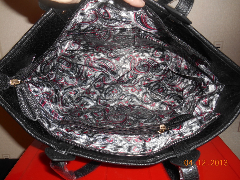 Пришла моя сумочка...я осталась более, чем довольна, тем более за те деньги, что я за нее заплатила - меньше 1000 рублей по-моему)) Качество приятно удивило, все замки работают, швы прострочены, на ощупь материал очень мягкий и приятный, сумочка, конечно, немного подванивает, но думаю это решится за пару дней...в жизни она оказалась намного лучше, чем на фото