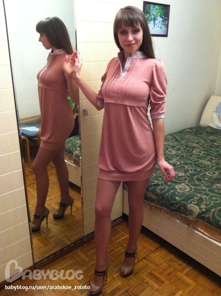 Кристиночка, огромное спасибо за платье!!! Оно офигенное!! Очень подойдет для стильных беременяшек!!! Ткань очень нежная к телу))) На мне 42 р.