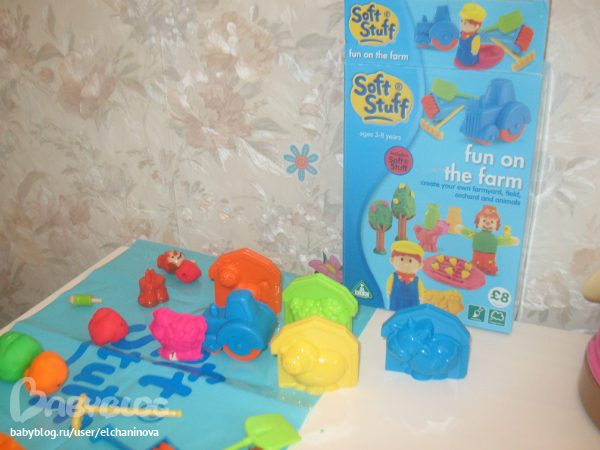 Не могу обратить внимание мамочек на этот комплект для лепки ELC! в наших магазинах его не видела, а жаль! (Набор массы для лепки не входит - на фото набор покупался отдельно.) Понравились формы 3D для быстрой лепки овечки, хрюшки, лошадки и коровы (на 1 и 2 фото розовая овечка слеплена)