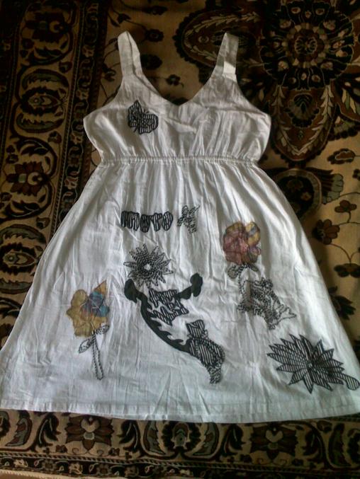Сарафан INDIANO , белый, хлопок, размер 44-46, длина от груди 56 см., под грудью резинка. Отшиваются в Индии. Цена 550 руб.