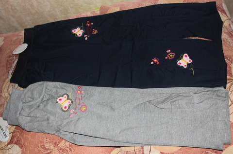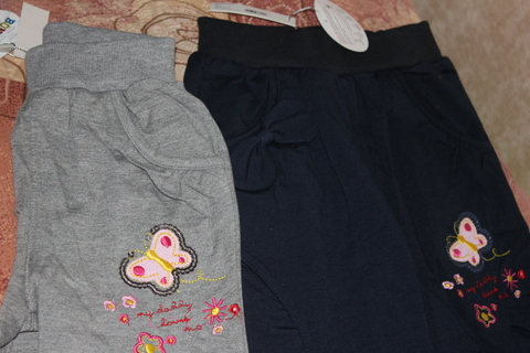 брючки р.110 — 179р.+%, на фото как то уж ярко цвет получился, в живую коралловый , шаговый 47 см. Своей я такие оставила, ткань приятная мягкая с добавлением эластана, тянется хорошо. Вишенки стразиками выложены..