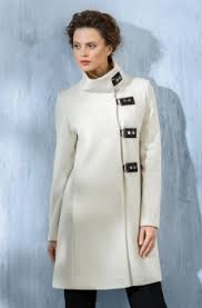 Пальто полуприлегающего силуэта со смещенной застежкой на кнопки и клеванты из кожи. Рукава втачные. Воротник- высокая стойка. Карманы в вертикальных рельефах. На спинке шлица.