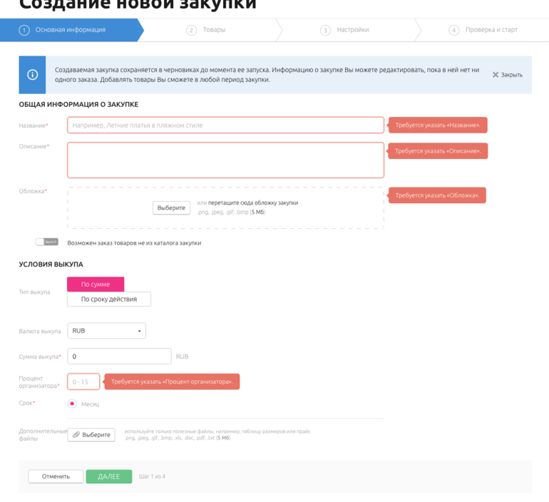 ПЛАТФОРМА СПЕсли Вы какое-то поле при создании закупки не заполнили,то на следующий шаг создания Вы не сможете перейти.