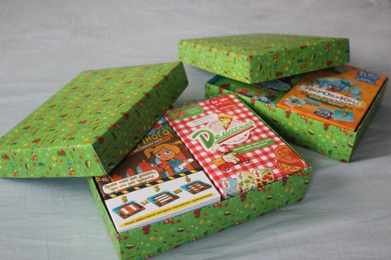 Набор "Всё и сразу" из 10 настольных игр в двух симпатичных подарочных коробках, в таких же, что и "Набор умника". Очень удачное решение - красиво и для подарка, удобно и для хранения :)
