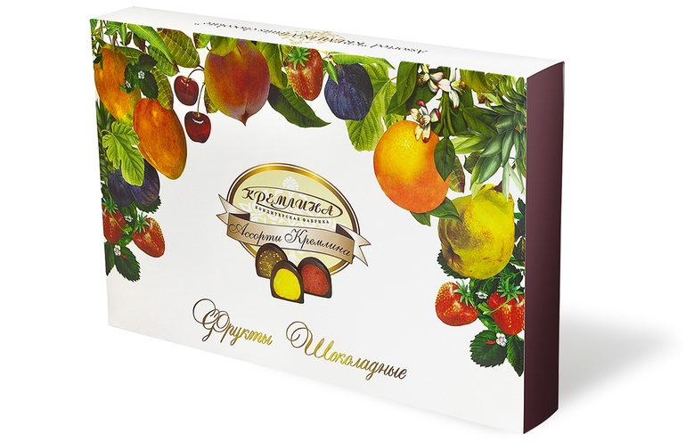 3. Ассорти Кремлина фрукты шоколадные 500гр. В коробе 4шт.