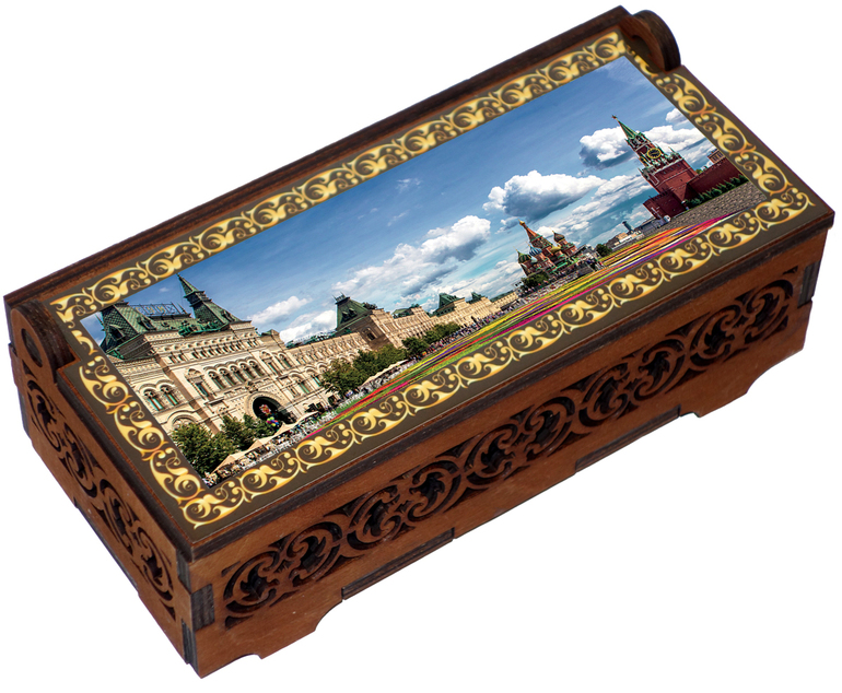 Хотите удивить знакомых ярким и вкусным подарком? Отличный вариант - конфеты от КФ Кремлина в красивых шкатулках. Яркая сочная, насыщенная конфета на основе натурального цуката ананаса с вишневой джемовой начинкой в шоколадной глазури, созданная по уникальной рецептуре КФ "Кремлина". Поддерживается постоянный запас шкатулок с различными изображениями. Более 50 сюжетов оформления шкатулок. Основные тематические серии: «Путин», «Природа», «Русский лубок», «Цветы и весна», «Праздники», «Храмы России», «Виды Москвы», «Новый год». Конфеты в резной шкатулке с магнитным замком, весом 150 г. Размер 170х58х80 мм.