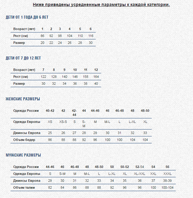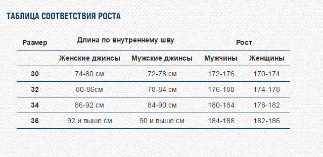 Для Вашего удобства мы собрали таблицы соответствия размеров джинсовой одежды,
