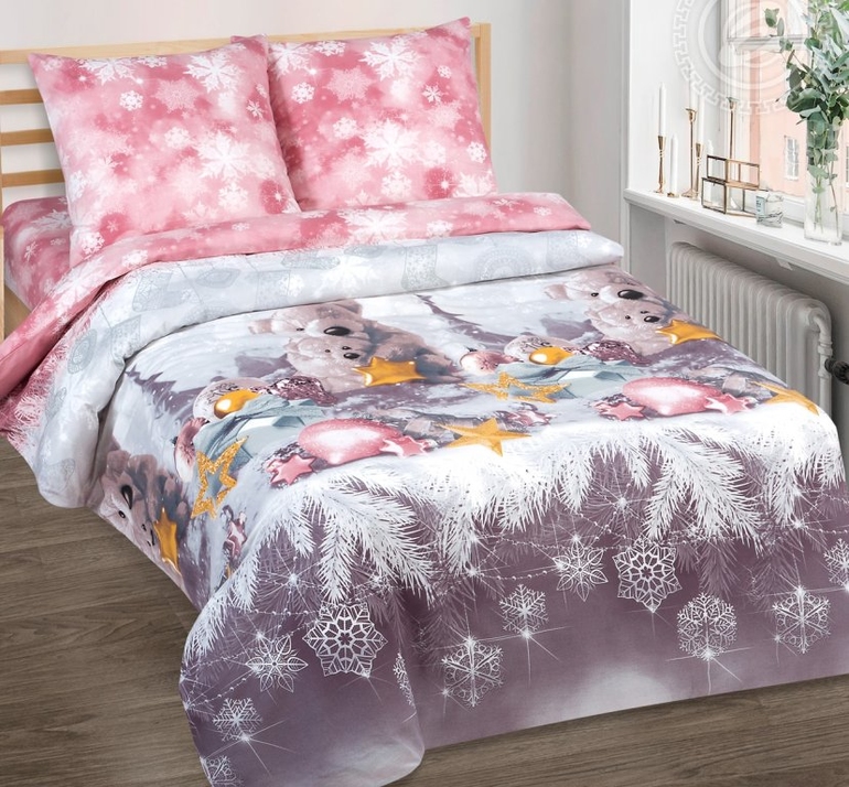 Новогодний ласковый мишка - хранитель детских снов и секретов. Он не только оберегает сон малыша, но и знает все его желания, которых так много в преддверии новогодних праздников. Окунуться в розовые грезы и помечтать, что может быть лучше? Ткань поплин, прекрасно подходит для пошива комплектов детского постельного белья.