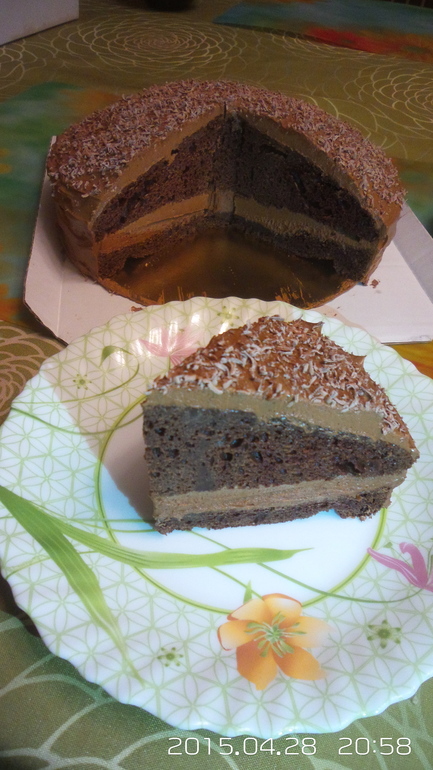 Тортик очень очень вкусный, нежный, шоколадненький весь такой. Очень красивый, аккуратный, в коробочке с бантиком и смайликом.