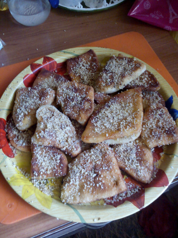 выкладывает на салфетку,чтоб избавиться от лишнего масла.Складывает все на большую тарелку(или поднос) и...а дальше как душе угодно))можно посыпать сахарной пудрой или залить медом и посыпать орехами или просто вареньем.