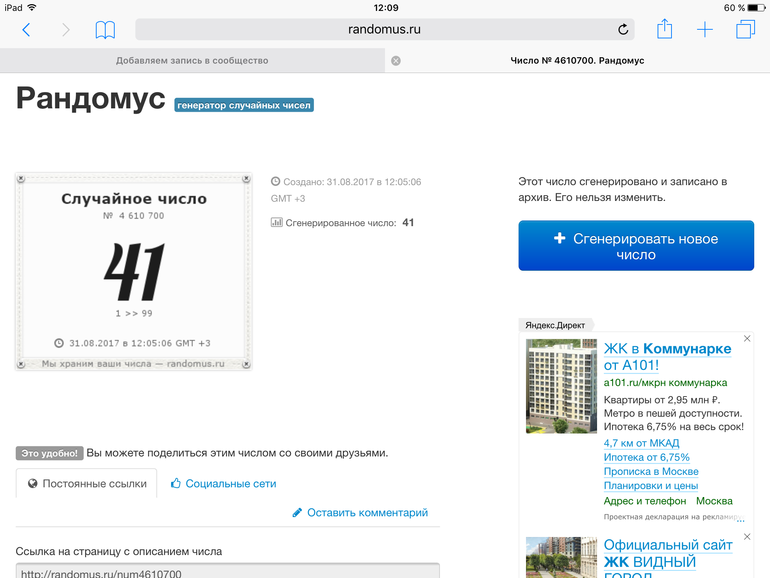 Розыгрыш: зная статистику( что первый и последний реееееедко выигрывают), сделаем так: к вашему номеру прибавляем 34, т.е Вы были N1, стали 35, были 24- стали 58 и т.д. В рандомусе сделаю интервал 1-99. Нам нужно 35-68 включительно. Первое число, которое попадёт в этот интрервал и будет выигрышным, от него отнимем 34 и получим ваш номер! О,как!!!! Поехали?