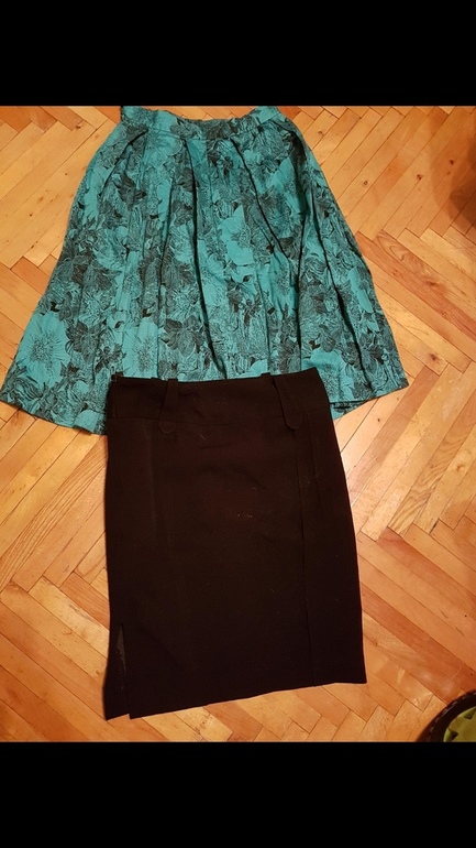 Две юбки, зелена на 42р, черная на 44, еще дам вязанную кофточку - накидку, теплую, бежевого цвета на 42-44р