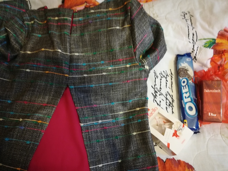 Благодарности и поздравленияСОФиКО Огромнейшее Вам спасибо за подарок! Сказать, что я счастлива, ничего не сказать, я довольная, как слон, я в необычайном восторге!!! Большое человеческое СПАСИБО!! Необыкновенной красоты кофточка, села, как влитая, и очень идёт цветовая гамма. Духи Фарингейт, классика. И сладости! Дай Бог Вам крепкого здоровья, безграничного счастья и благополучия!!!
