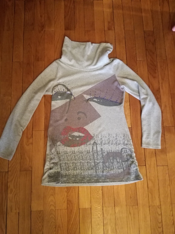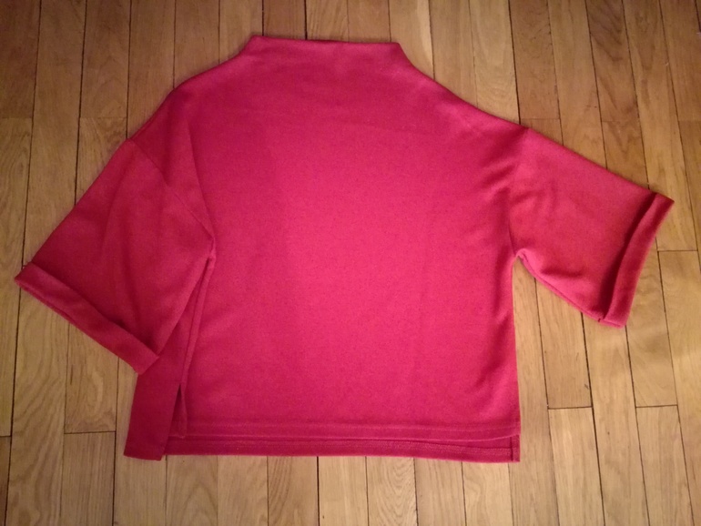 Маленький джемпер, спущенный рукав до локтя, длина чуть ниже талии на рост 164. На самом деле темно-красный. Тоже на 42-44, м-ка