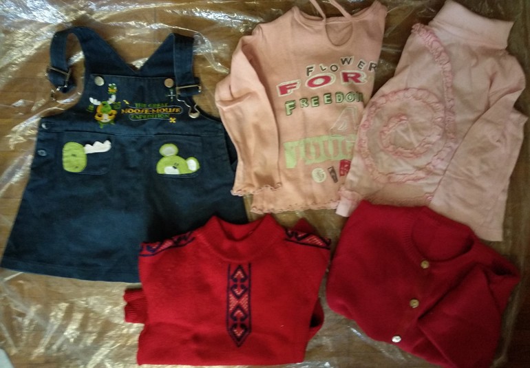 ОТДАМ детские ВЕЩИОтдаю несколько вещей для девочки (80-86). Сарафан надо зашить сбоку, по шву порван. Остальное носибельно, для продажи не подойдёт.