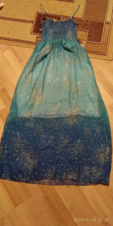 1. Платье макси, размер 44-46 (оно на резиночках). Подойдёт беременным.