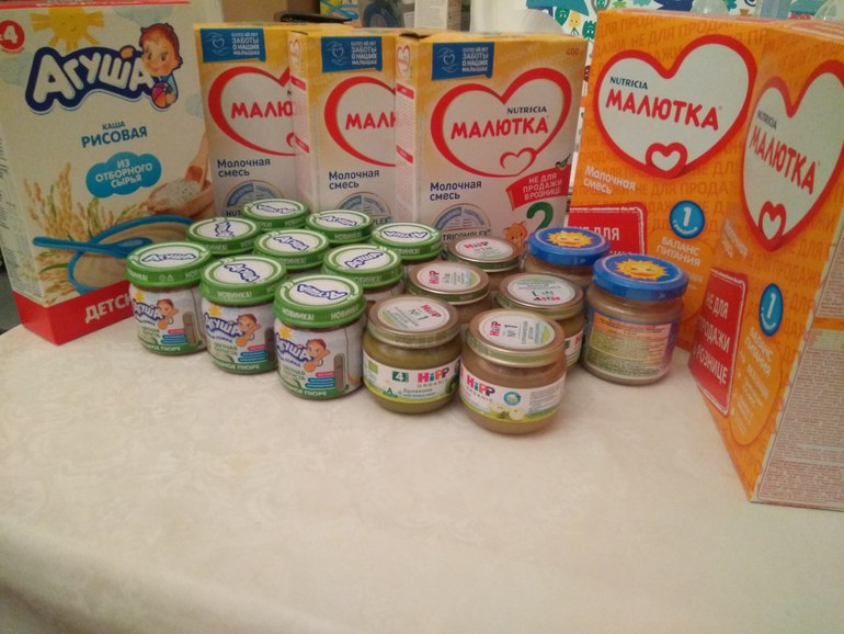 Отдам даром 5 пачек смеси Малютка и 16 банок овощного пюре