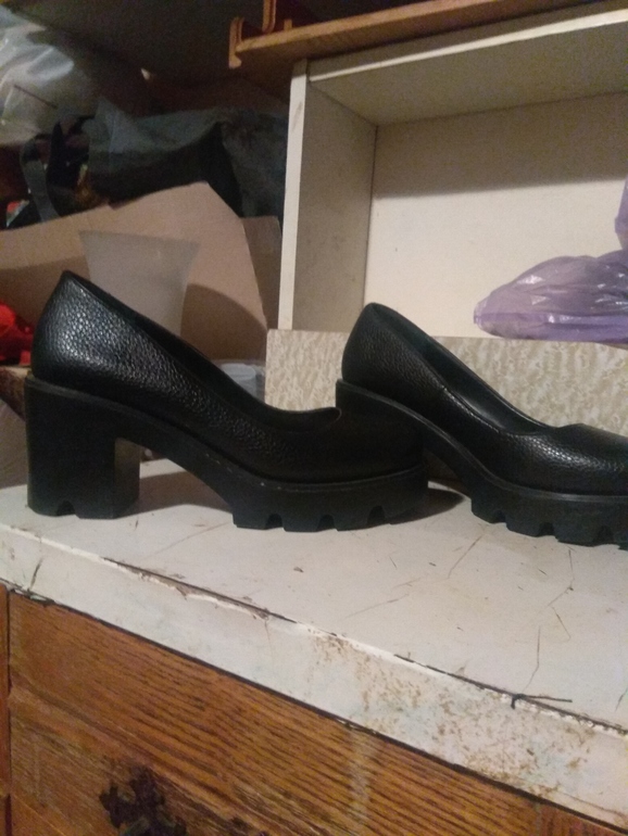 Туфли на узкий 36 или 35 размер. Черные. Состояние отличное - новые. Кожа или зам - не определяю. Устойчивый толстый каблук.